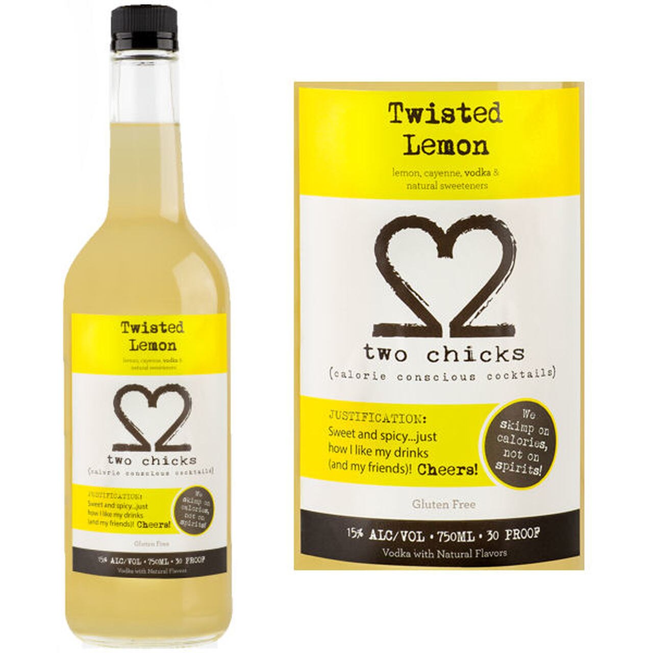 Juice cleanses are all the rage these days. Apparently, cleanses rid your body of toxins and you can even drop a few pounds while you're at it. I heard this and thought, "Sign me up! I am definitely toxic. " As I gagged on juices throughout the day I asked myself why I would submit myself to this torture, I finally got to the lemonade drink. It had a little cayenne in it to "boost metabolism. " I took a sip and thought, "This is delightful, but it would be better with a little vodka. " And. . . Twisted Lemon was born. Fresh, all natural lemon juice with a hint of cayenne makes for a tart and mildly spicy cocktail that is not only refreshing but delicious. Natural Ingredients - Lemon, Cayenne, vodka, & natural sweetenerNutritional Facts - 1. 5 oz. = 45 calories30 Proof